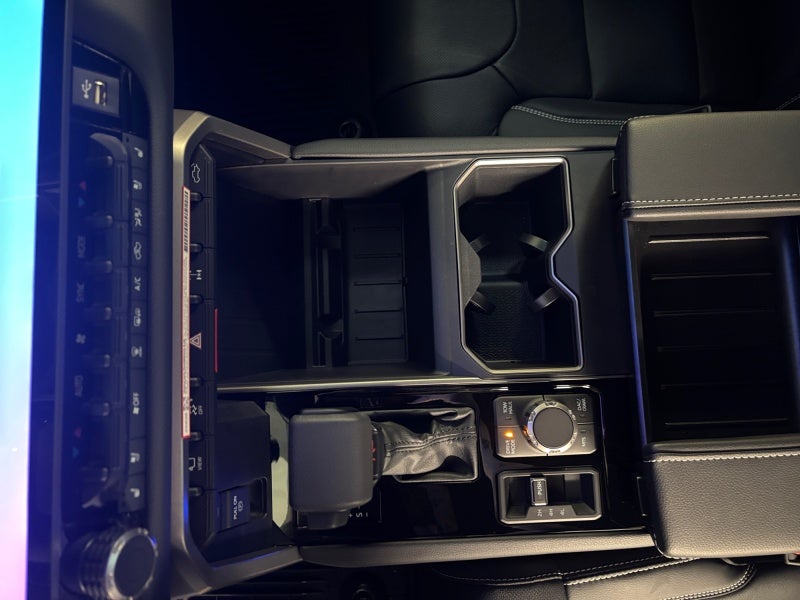 • Illuminated center console storage bin and glove box