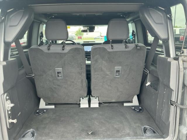 CARBONIZED GRAY METALLIC, DARK GRAY W/BLACK ONYX, CLOTH BUCKET SEATS, EQUIPMENT GROUP 221A STANDARD PACKAGE, FRONT LICENSE PLATE BRACKET, FRONT ROW TOP PANELS & DOOR STORAGE BAGS, LED SIGNATURE LIGHTING, TRANSMISSION: 10-SPEED AUTOMATIC, Black door handles,Perimeter alarm,Locking glove box,Outside temp gauge,Front map lights,Fade-to-off interior lighting,Gas-pressurized shock absorbers,Driver information center,Compass,Deep tinted glass,Front center armrest,Driver foot rest,Cruise control w/steering wheel controls,Day-night rearview mirror,Redundant digital speedometer,Variable intermittent wipers,Black fender flares,Air filtration,Single stainless steel exhaust,Rear cupholder,Front anti-roll bar,Fixed antenna,Manual tilt/telescoping steering column,Fully Galvanized Steel Panels,Front Cupholder,Carpet Floor Trim,Cargo Space Lights,2 Seatback Storage Pockets,Side Impact Beams,Electronic Transfer Case,Leather/Metal-Look Steering Wheel,HVAC -inc: Underseat Ducts,2 LCD Monitors In The Front,Tracker System,Gray grille,2 12V DC Power Outlets,Cargo Area Concealed Storage,Black Side Windows Trim,Delayed Accessory Power,Dual Stage Driver And Passenger Seat-Mounted Side Airbags,Dual Stage Driver And Passenger Front Airbags,Power 1st Row Windows w/Driver And Passenger 1-Touch Up/Down,Outboard Front Lap And Shoulder Safety Belts -inc: Pretensioners,Electric Power-Assist Steering,Black Power Heated Side Mirrors w/Convex Spotter and Manual Folding,Auto Locking Hubs,Mykey System -inc: Top Speed Limiter, Audio Volume Limiter, Early Low Fuel Warning, Programmable Sound Chimes and Beltminder w/Audio Mute,Part-Time Four-Wheel Drive,Removable Rear Windows,Interior Trim -inc: Metal-Look Interior Accents,Short And Long Arm Front Suspension w/Coil Springs,Aluminum Spare Wheel,16.9 Gal. Fuel Tank,Engine Auto Stop-Start Feature,Off-Road Suspension,Safety Canopy System Curtain 1st And 2nd Row Airbags,Seats w/Cloth Back Material,Dashboard Storage, Driver And Passenger Door Bins,Full Floor Console w/Locking Storage, Mini Overhead Console w/Storage and 2 12V DC Power Outlets,80-Amp/Hr 800CCA Maintenance-Free Battery w/Run Down Protection,GVWR: 5,540 lbs,Streaming Audio,Manual Adjustable Front Head Restraints and Foldable Rear Head Restraints,Towing Equipment -inc: Trailer Sway Control,Passenger Seat -inc: Manual Rear Seat Easy Entry,Driver Seat -inc: Manual Rear Seat Easy Entry,Ford Co-Pilot360 - Pre-Collision Assist with Pedestrian Detection,Leather/Metal-Look Gear Shifter Material,50 State Emissions System,Personal Safety System Airbag Occupancy Sensor,Digital/Analog Appearance,Wheels: 17" Carbonized Gray-Painted Aluminum,Engine: 2.3L EcoBoost I-4,4.46 Axle Ratio,Manual Convertible Hard Top w/Lining, Glass Rear Window and Fixed Roll-Over Protection,50-50 Folding Split-Bench Front Facing Fold Forward Seatback Cloth Rear Seat,1242# Maximum Payload,Solid Axle Rear Suspension w/Coil Springs,Immobilizer,Regenerative 250 Amp Alternator,Swing-Out Rear Cargo Access,Flip-Up Rear Window w/Wiper and Defroster
