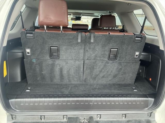 50 STATE EMISSIONS, ALL WEATHER FLOOR LINERS (TMS), BLIZZARD PEARL, CARGO COVER (TMS), Certified Used, DOOR EDGE GUARDS (TMS), EXHAUST TIP (TMS), KEEP IT WILD SAVINGS, LEATHER-TRIMMED 50/50 SPLIT FOLD-FLAT 3RD ROW, LIMITED PACKAGE, Luggage Rack, MUDGUARDS (TMS), Navigation System, Power Sunroof, QUICK CHARGE CABLE (TMS), REDWOOD, LEATHER SEAT TRIM, SPECIAL COLOR, Towing/Camper Pkg, Locking glove box,Outside temp gauge,Front map lights,Fade-to-off interior lighting,Driver information center,Full cloth headliner,Chrome door handles,Rear child safety locks,Compass,Deep tinted glass,Driver foot rest,Cruise control w/steering wheel controls,Garage door opener,Air filtration,Double wishbone front suspension w/coil springs,Single stainless steel exhaust,Rear cupholder,LED brakelights,Leatherette door trim insert,Steel spare wheel,Low tire pressure warning,Manual tilt/telescoping steering column,Front And Rear Anti-Roll Bars,Fully Galvanized Steel Panels,Liftgate Rear Cargo Access,Front Cupholder,Carpet Floor Trim,Cargo Space Lights,Front Center Armrest And Rear Center Armrest,2 Seatback Storage Pockets,Side Impact Beams,Airbag Occupancy Sensor,Electronic Transfer Case,Lip Spoiler,1 LCD Monitor In The Front,Perimeter/Approach Lights,Heated Leather/Metal-Look Steering Wheel,Valet Function,Tracker System,Day-Night Auto-Dimming Rearview Mirror,Chrome Bodyside Insert, Rocker Panel Extensions And Body-Colored Fender Flares,Real-Time Traffic Display,HVAC -inc: Underseat Ducts And Console Ducts,Delayed Accessory Power,Dual Stage Driver And Passenger Seat-Mounted Side Airbags,Dual Stage Driver And Passenger Front Airbags,Outboard Front Lap And Shoulder Safety Belts -inc: Rear Center 3 Point, Height Adjusters and Pretensioners,Hydraulic Power-Assist Speed-Sensing Steering,Window Grid Diversity Antenna,Front And Rear Parking Sensors,Chrome Side Windows Trim, Black Front Windshield Trim and Black Rear Window Trim,Audio Theft Deterrent,Auto Locking Hubs,Full-Size Spare Tire Stored Underbody w/Crankdown,Driver And Passenger Knee Airbag,Full-Time Four-Wheel Drive,Variable Intermittent Wipers w/Heated Wiper Park,Grille w/Chrome Bar,Body-Colored Side Mirrors,1495# Maximum Payload,Interior Trim -inc: Simulated Wood/Metal-Look Instrument Panel Insert, Metal-Look Door Panel Insert, Metal-Look Console Insert and Metal-Look Interior Accents,Front Splash Guards,5 12V DC Power Outlets,3.727 Axle Ratio,GVWR: 6,300 lbs,72-Amp/Hr 750CCA Maintenance-Free Battery,3 Skid Plates,Automatic Ride Control Suspension,23 Gal. Fuel Tank,Tires: P245/60R20 Mud & Snow,Body-Colored Front Bumper w/Chrome Rub Strip/Fascia Accent and 1 Tow Hook,Body-Colored Rear Step Bumper w/Chrome Rub Strip/Fascia Accent,15 Speakers,4-Wheel Disc Brakes w/4-Wheel ABS, Front And Rear Vented Discs, Brake Assist, Hill Descent Control and Hill Hold Control,Driver And Passenger Visor Vanity Mirrors w/Driver And Passenger Illumination, Driver And Passenger Auxiliary Mirror,Curtain 1st, 2nd And 3rd Row Airbags,Instrument Panel Covered Bin, Driver / Passenger And Rear Door Bins,Manual Anti-Whiplash Adjustable Front Head Restraints and Manual Adjustable Rear Head Restraints,Dynamic Radar Cruise Control (DRCC),40-20-40 Folding Split-Bench Front Facing Manual Reclining Fold Forward Seatback Rear Seat,Turn-By-Turn Navigation Directions,Driver Seat,Lane Departure Alert (LDA) Lane Departure Warning,Moonroof w/Tilt Up & Slide,Engine: 4.0L DOHC 24-Valve V6,Passenger Seat,Trailer Wiring Harness,Toyota Safety Sense P (TSS-P),Blind Spot Monitor (BSM) Blind Spot,Leather/Simulated Wood Gear Shifter Material,Analog Appearance,Auto On/Off Projector Beam Led Low/High Beam Daytime Running Auto High-Beam Headlamps w/Delay-Off,Headlights-Automatic Highbeams,Collision Mitigation-Front,X-REAS Brand Name Shock Absorbers,Wheels: 20" Unique Dual 6-Spoke Alloy,Dual Zone Auto Climate Control,Silver Roof Rails,Panoramic Back Monitor,Solid Axle Rear Suspension w/Coil Springs,Heated Outside Rear View Mirrors,Rear Cross-Traffic Alert (RCTA),Full Floor Console w/Covered Storage, Mini Overhead Console w/Storage, 5 12V DC Power Outlets and 1 Interior 120V AC Power Outlet,5 12V DC Power Outlets and 1 Interior 120V AC Power Outlet,Power Rear Window w/Wiper and Defroster