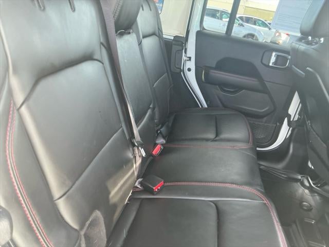 3.6L V6 Engine, Aluminum/Alloy Wheels, Automatic Climate Control, BLACK, NAPPA LEATHER SEATS, BODY COLOR 3-PIECE HARD TOP, BRIGHT WHITE CLEARCOAT, CONVENIENCE GROUP, Fixed Running Boards, Fog Lights, FRONT LICENSE PLATE BRACKET, Heated Front Seats, Leather Seats, Locking/Limited Slip Differential, MOPAR ALL-WEATHER FLOOR MATS, Passive Keyless Entry, Power Driver's Seat, Power Passenger Seat, QUICK ORDER PACKAGE 23R RUBICON, TIRES: LT285/70R17C BSW OFF-ROAD, Towing/Camper Pkg, Univ Garage Door Opener, Black door handles,4.10 rear axle ratio,Perimeter alarm,Locking glove box,HD gas-pressurized shock absorbers,Outside temp gauge,Fade-to-off interior lighting,Driver information center,Engine oil cooler,Rear child safety locks,Compass,Deep tinted glass,Front fog lamps,Cruise control w/steering wheel controls,Day-night rearview mirror,Front center armrest w/storage,Performance suspension,Redundant digital speedometer,Variable intermittent wipers,Air filtration,Single stainless steel exhaust,LED brakelights,ParkView back-up camera,Manual tilt/telescoping steering column,Front And Rear Anti-Roll Bars,Cargo Space Lights,2 Seatback Storage Pockets,Side Impact Beams,Curtain 1st And 2nd Row Airbags,Airbag Occupancy Sensor,Front And Rear Map Lights,700CCA Maintenance-Free Battery w/Run Down Protection,2 LCD Monitors In The Front,HVAC -inc: Console Ducts,Tracker System,Tire Specific Low Tire Pressure Warning,Window Grid Antenna,2 12V DC Power Outlets,Electro-Hydraulic Power Assist Steering,Black Side Windows Trim,Delayed Accessory Power,Dual Stage Driver And Passenger Seat-Mounted Side Airbags,Dual Stage Driver And Passenger Front Airbags,Outboard Front Lap And Shoulder Safety Belts -inc: Rear Center 3 Point, Height Adjusters and Pretensioners,Driver And Passenger Visor Vanity Mirrors w/Driver And Passenger Illumination,Voice Activated Dual Zone Front Automatic Air Conditioning,Black Power Heated Side Mirrors w/Manual Folding,Auto Locking Hubs,50 State Emissions,Manual Transfer Case,Part-Time Four-Wheel Drive,Leading Link Front Suspension w/Coil Springs,Full-Size Spare Tire Mounted Outside Rear,Removable Rear Window,Locking Cargo Area Concealed Storage,60-40 Folding Split-Bench Front Facing Fold Forward Seatback Cloth Rear Seat,Aluminum Spare Wheel,Leatherette Steering Wheel,4-Way Passenger Seat -inc: Manual Recline and Fore/Aft Movement,Carpet Floor Trim, Carpet And Rubber Mat,Instrument Panel Bin, Dashboard Storage, Driver / Passenger And Rear Door Bins,Illuminated rear cupholder,Illuminated Front Cupholder,Engine: 3.6L V6 24V VVT UPG I w/ESS,Radio w/Seek-Scan, Clock, Speed Compensated Volume Control, Aux Audio Input Jack, Steering Wheel Controls, Voice Activation, Radio Data System and Uconnect External Memory Control,21.5 Gal. Fuel Tank,Non-Lock Fuel Cap w/o Discriminator,5 Skid Plates,Black Wheel Well Trim and Black Fender Flares,Interior Trim -inc: Colored Instrument Panel Insert, Metal-Look Door Panel Insert, Metal-Look Console Insert and Metal-Look Interior Accents,Streaming Audio,Galvanized Steel/Aluminum/Magnesium Panels,Body-Color Grille w/Colored Accents,Manual Adjustable Front Head Restraints and Foldable Rear Head Restraints,Towing Equipment -inc: Trailer Sway Control,4G LTE Wi-Fi Hot Spot,Trailer Wiring Harness,Aux Battery,Stop-Start Dual Battery System,97 MPH Vehicle Max Speed Calibration,Urethane Gear Shifter Material,8 Alpine Speakers,Paint w/Decal,Analog Appearance,Connectivity - US/Canada,240 Amp Alternator,Collision Mitigation-Front,Full Speed Forward Collision Warning Plus,Solid Axle Rear Suspension w/Coil Springs,Sentry Key Immobilizer,Swing-Out Rear Cargo Access,1327# Maximum Payload,Auto On/Off Reflector Led Low/High Beam Daytime Running Headlamps w/Delay-Off,2 12V DC Power Outlets and 1 Interior 120V AC Power Outlet,Full Floor Console w/Locking Storage, 2 12V DC Power Outlets and 1 Interior 120V AC Power Outlet,GVWR: 5,975 lbs,Class II Receiver Hitch,Auxiliary Switches